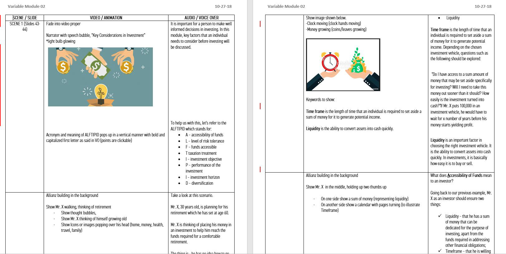 Here's the final preview on the scorm-compliant Elearning module for Allianz. Some animations were done by James Paul Pailmao.