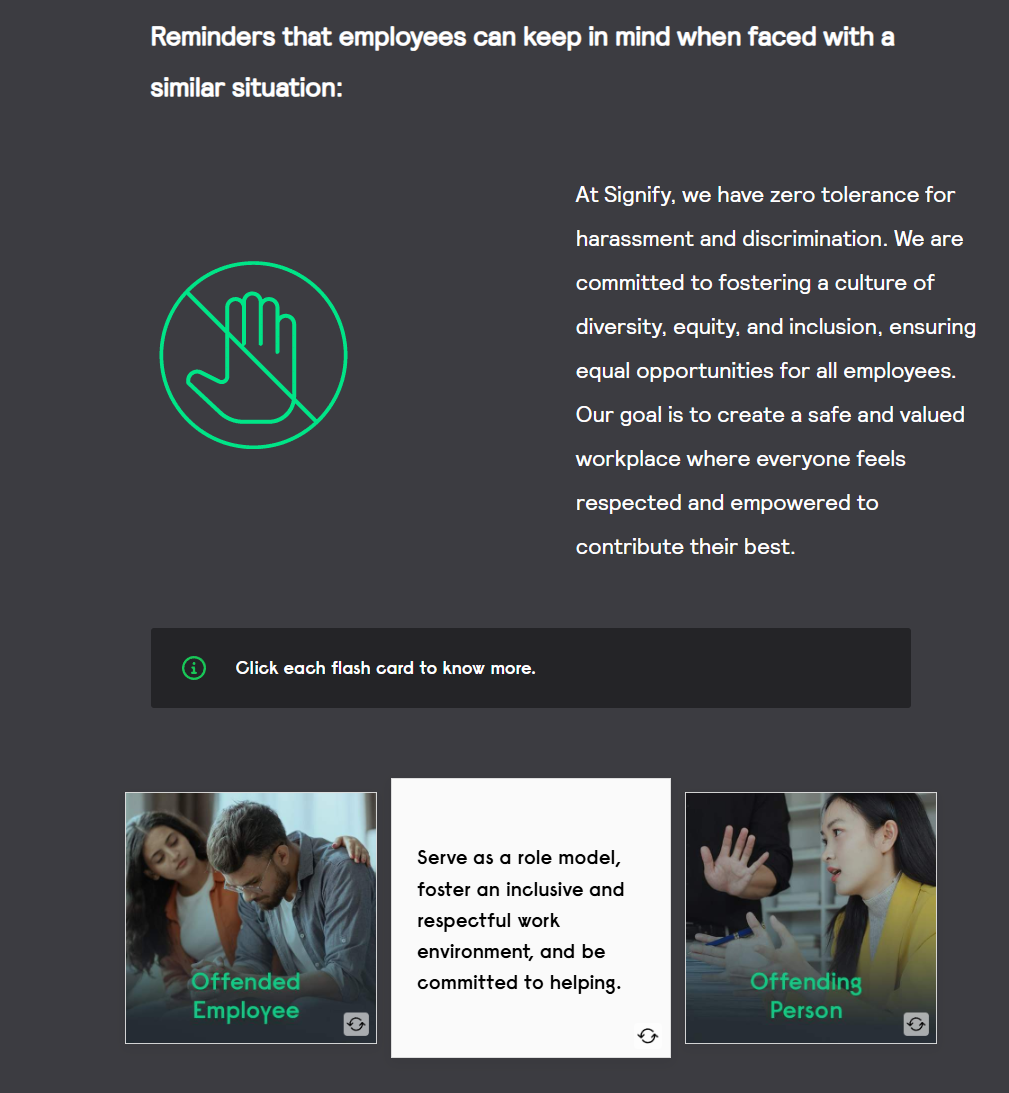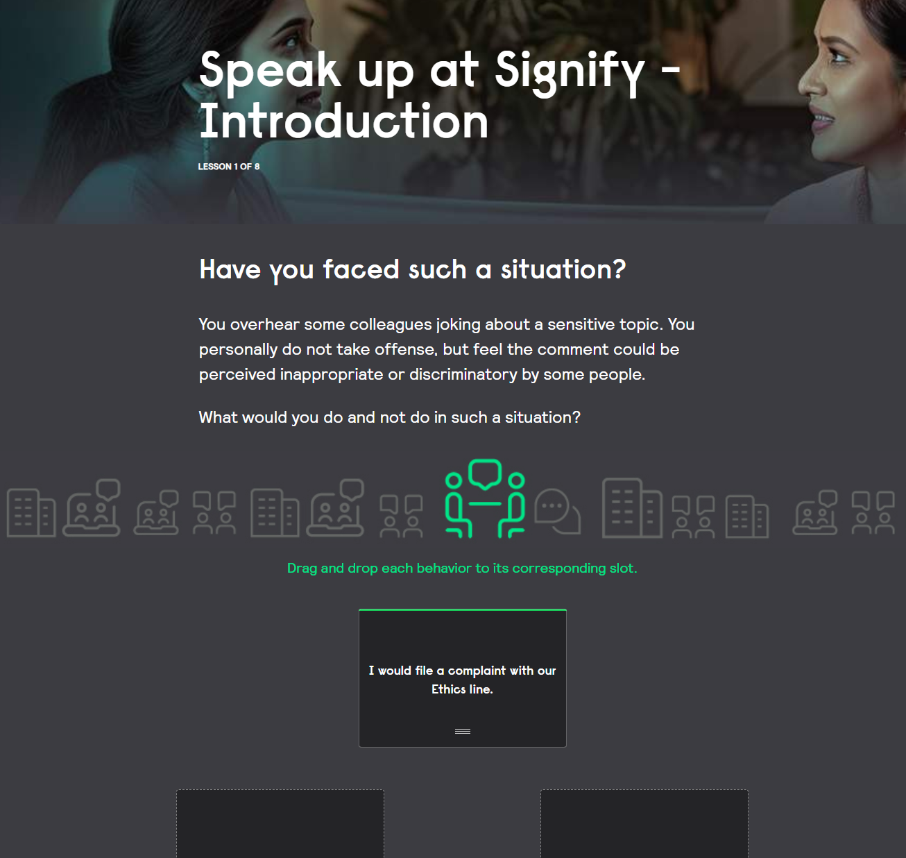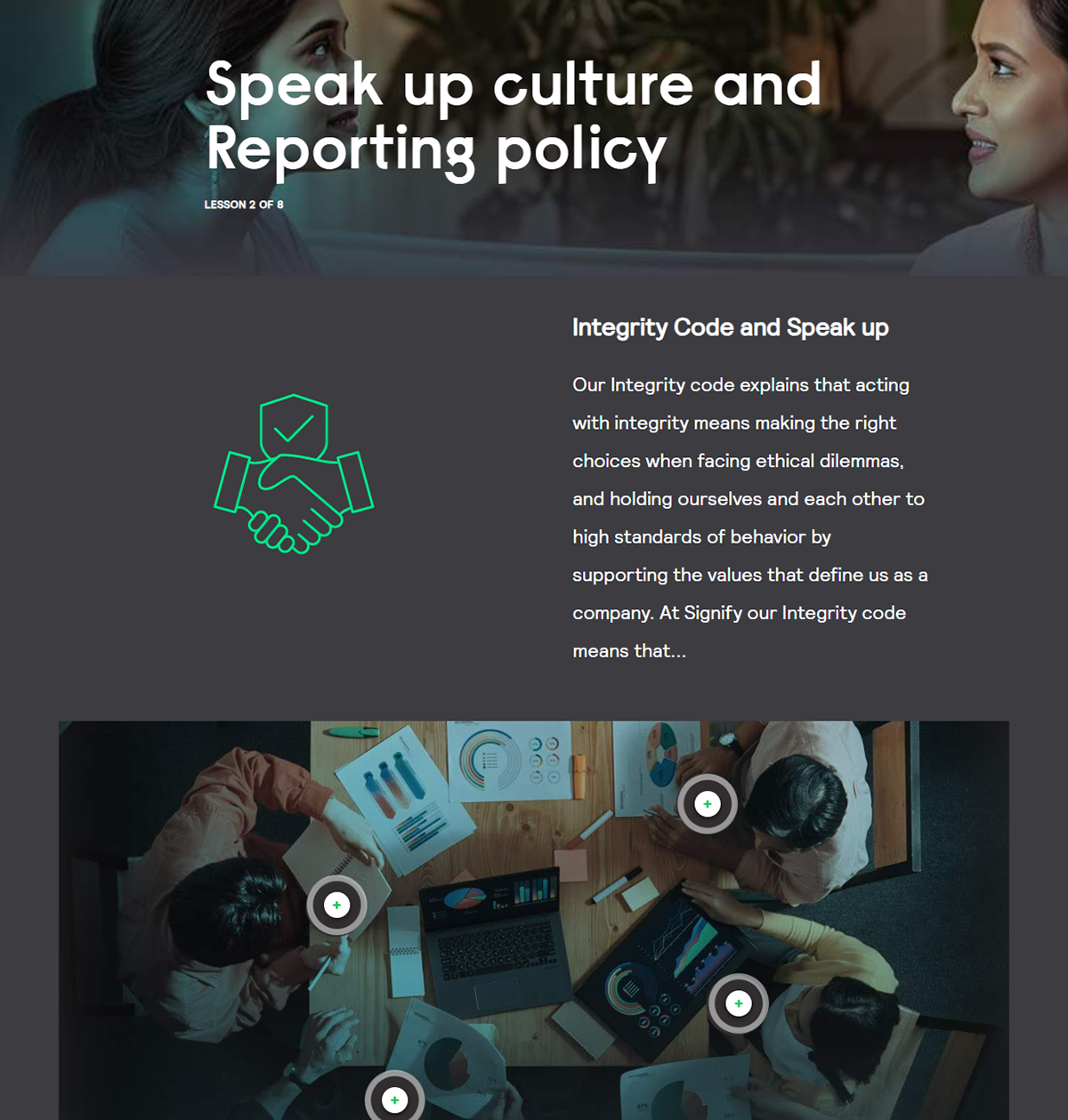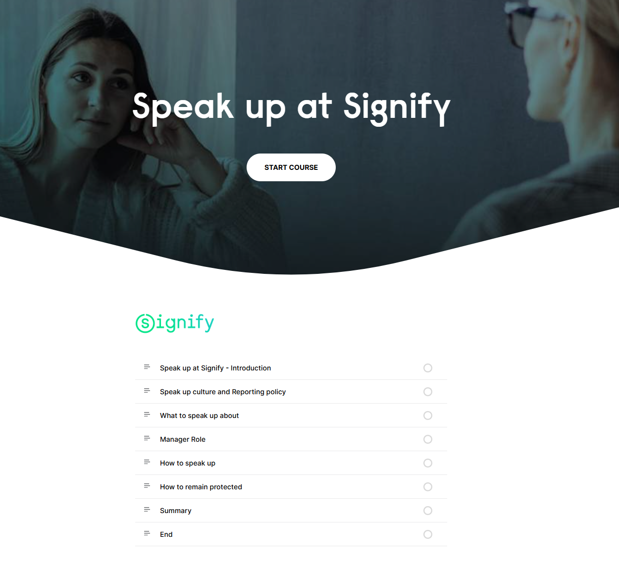 Elearning created using Articulate Rise 360 and Storyline 360 for Signify. Includes developmentĀ of interactive elements, animation and graphics. Check the live preview