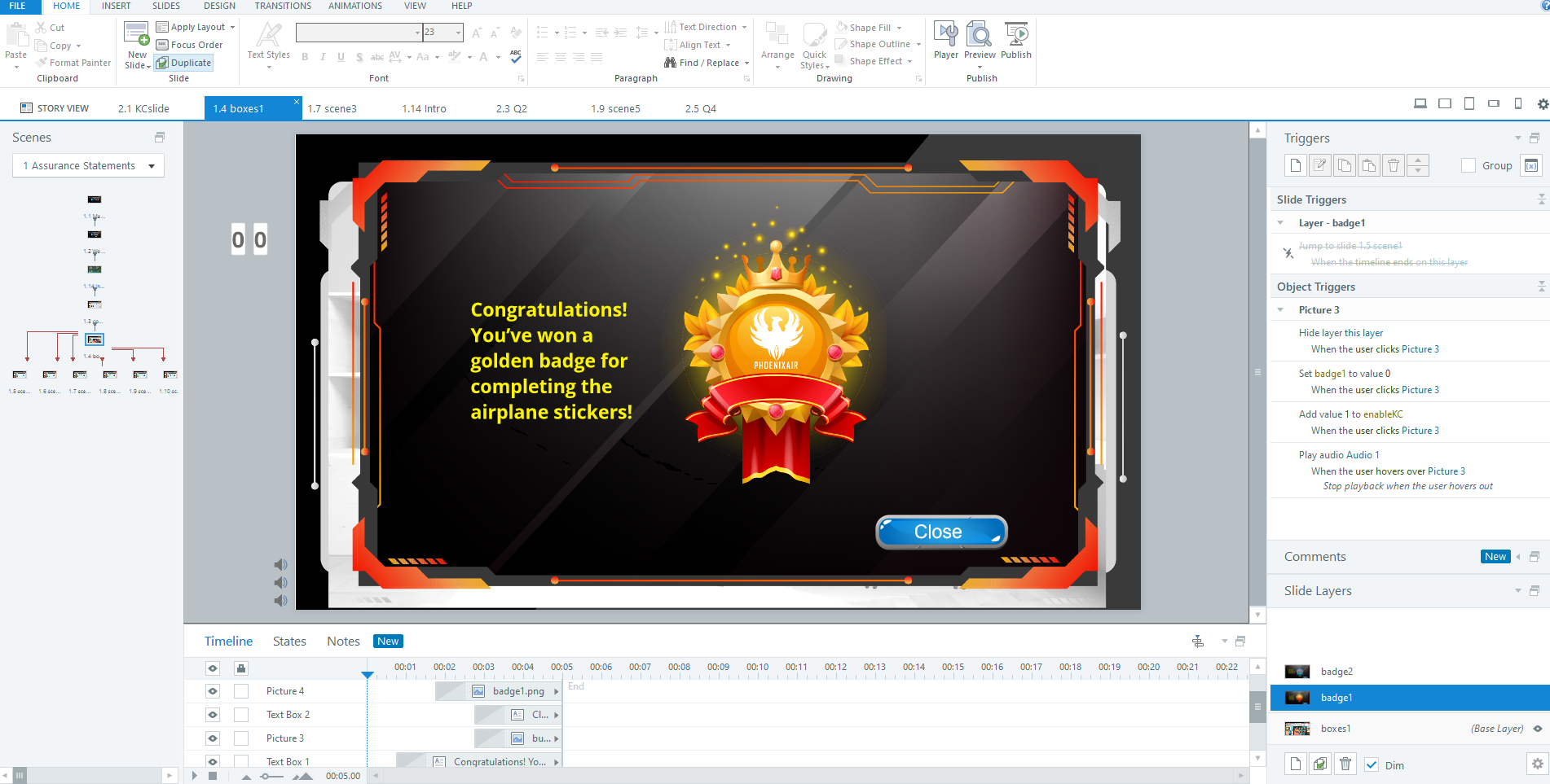 Created using Articulate 360 this training consists of gamified content with different scenarios to simulate how to use Assurance Statements effectively.