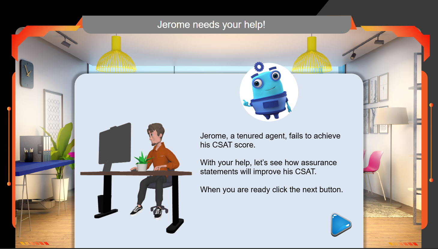 An online training created for a BPO company. This module focused on Assurance Statement and developed as Gamified to make it more immersive and engaging. This training module helped the agents achieved their KPIs and targeted CSAT score.