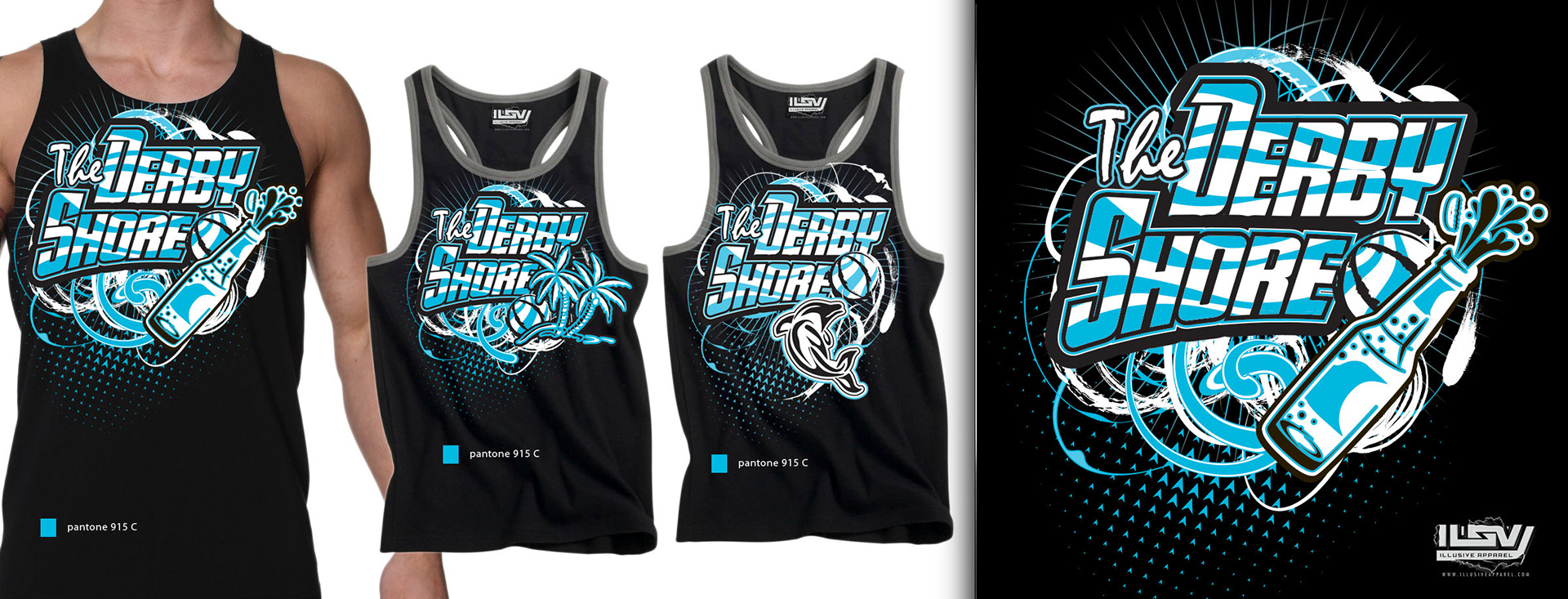 Key layout with apparel designs sold exclusively by Illusive Apparel
