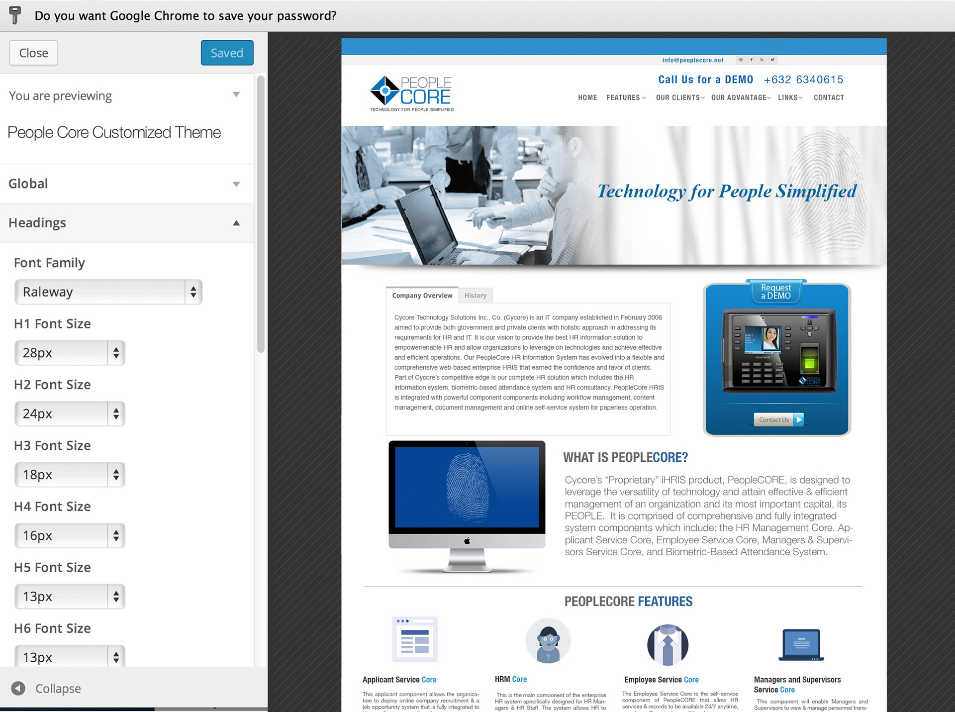 Finally, the approved Website design for PeopleCore.