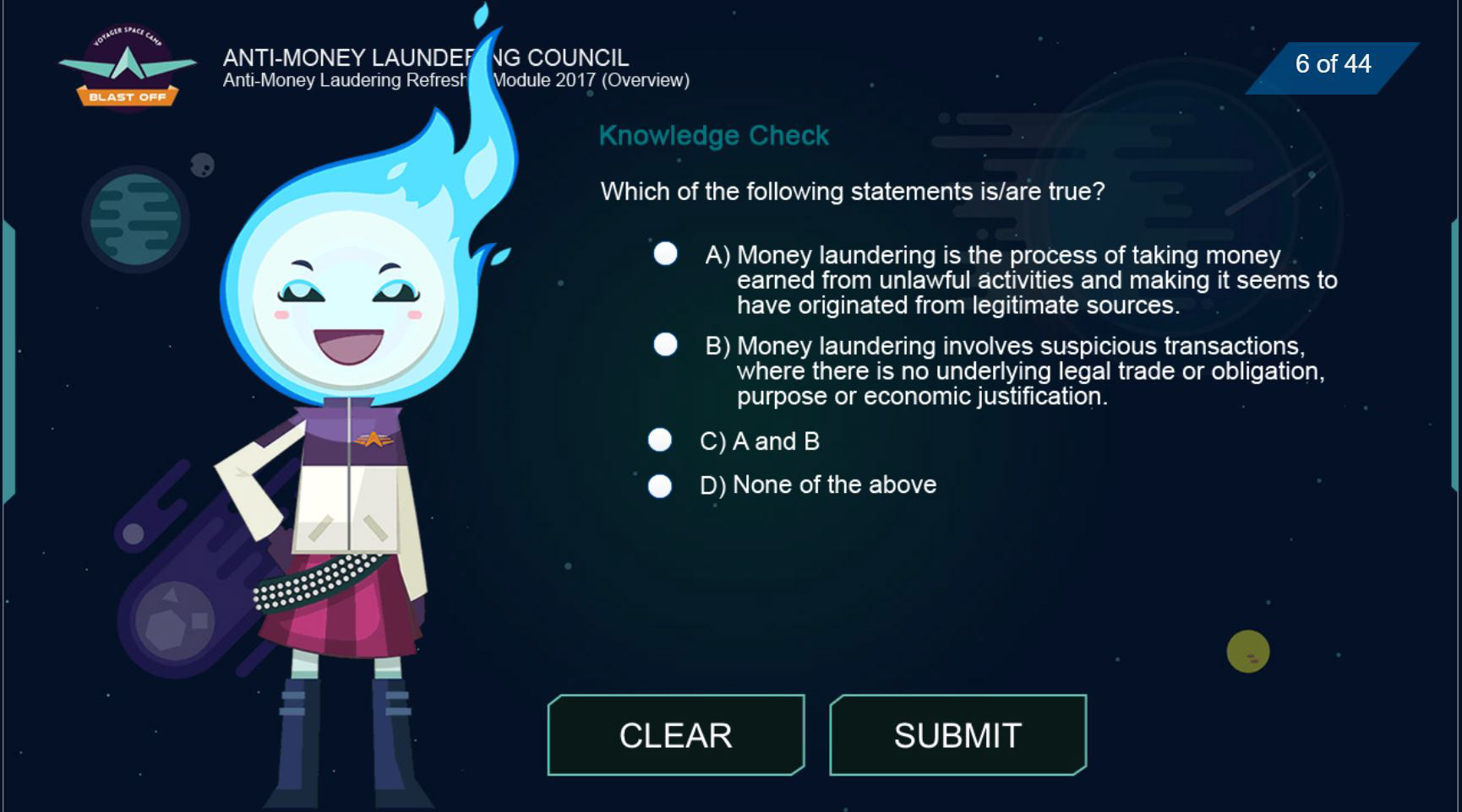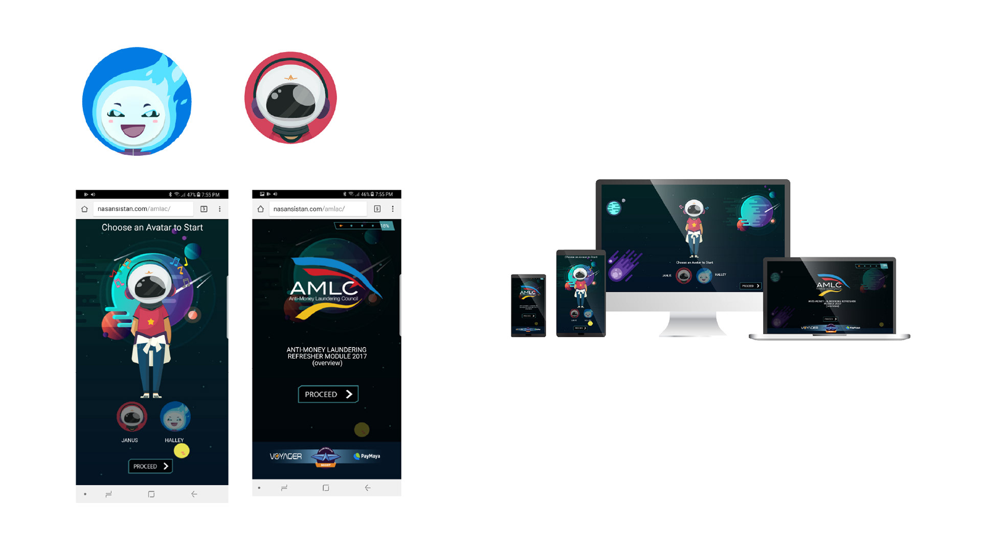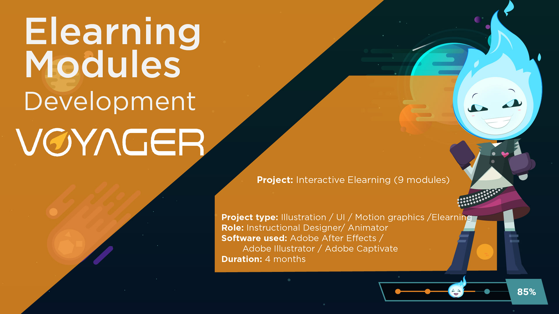 Based on the company branding and creative direction we developed the Instructional design map and the UI elements of the project. These will help us in finalizing the master template which will be used for all the modules. The creative direction is based on space theme, since the company (voyager) adapted the same theme in their office interior. *Some artworks are done by their in-house designers.